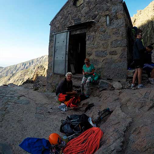 • Rock climbing activity and descent to the hut (3 to 5 hours).